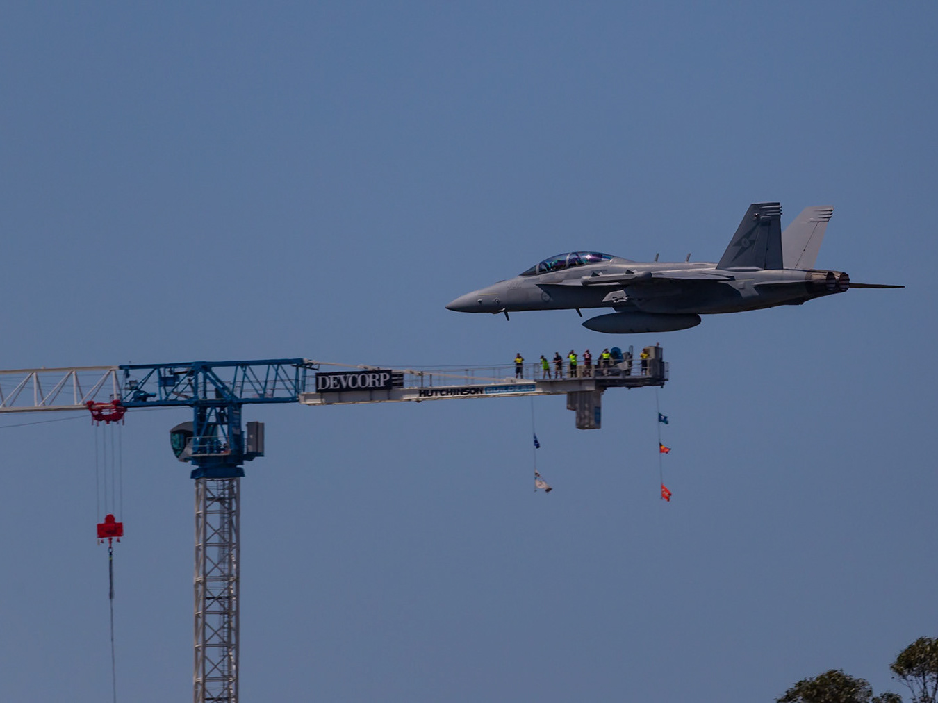RAAF FA18 Hornet on a practise run in preparation fot Riverfire 2019 in Brisbane, Australia